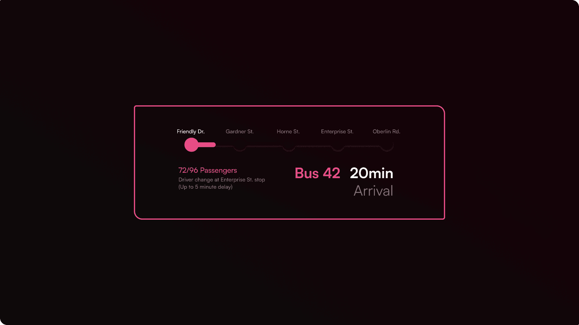 To implement a sense of predictability, passengers are empowered with the peace of mind knowing important information such as delays, routes, and other bus specific details.