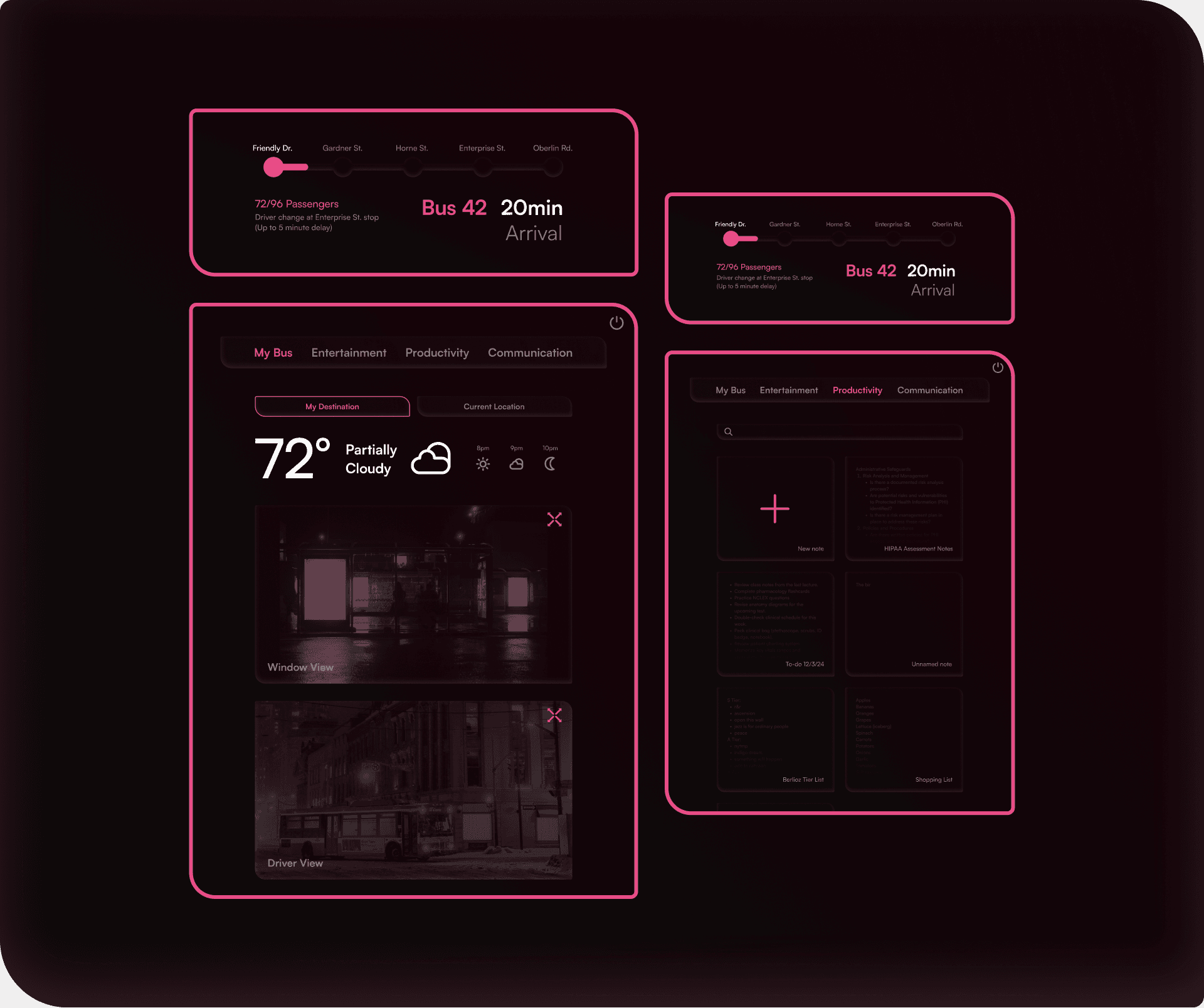 Inspired by Delta’s PARALLEL REALITY multi view airport experience, each passenger can see their own journey on the way to the bus stop.