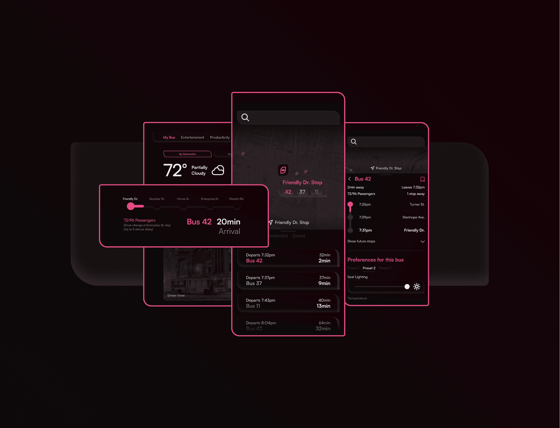 Integrated bus seat entertainment center brings transparency and relaxation to the passenger.